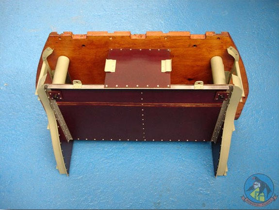 Après avoir enlevé minutieusement toutes les couches de peinture et référencé les marquages français et allemand, quelques photos montrent l'aile du He162 pendant son décapage, présentée pour découvrir sa construction bois si particulière.