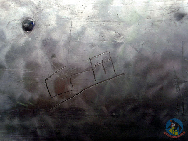 Durant les premières opérations de nettoyage, nous avons trouvé une inscription gravée sur la "porte" avant droite.